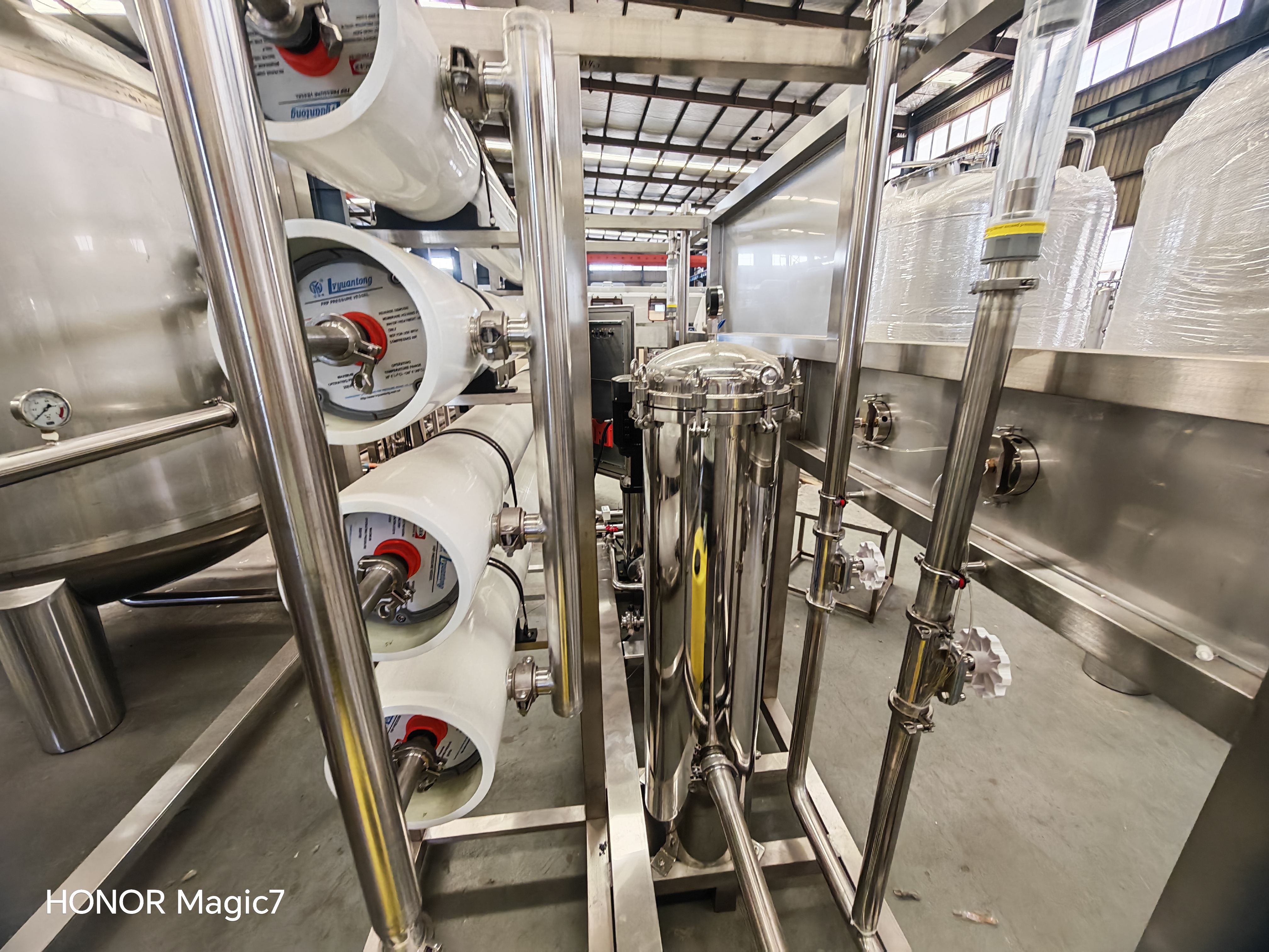 反滲透系統(tǒng)主要設(shè)備有石英砂過(guò)濾器,活性炭過(guò)濾器,鈉離子交換器,RO(反滲透),紫外線消毒器,精密過(guò)濾器,臭氧發(fā)生器,水箱等。處理能力為0.5-50噸/小時(shí)。它可以有效地去除泥濘的有機(jī)物,鐵,錳和氧化物,過(guò)濾懸浮物,膠體,微生物殘留的氧和水中的一些重金屬離子,降低水的硬度,使各種規(guī)格的水質(zhì)完全符合國(guó)家淡水標(biāo)準(zhǔn)的淡水。